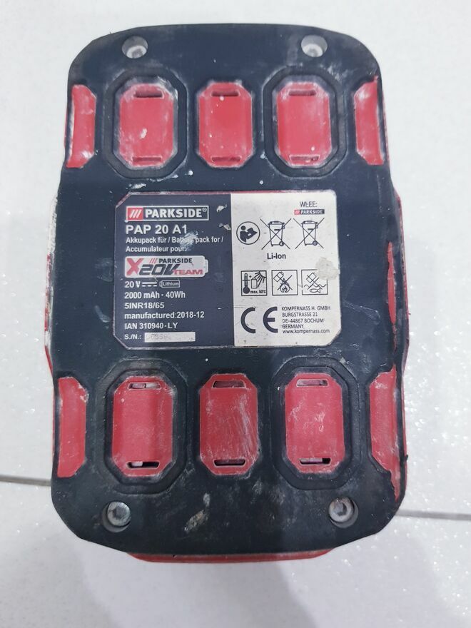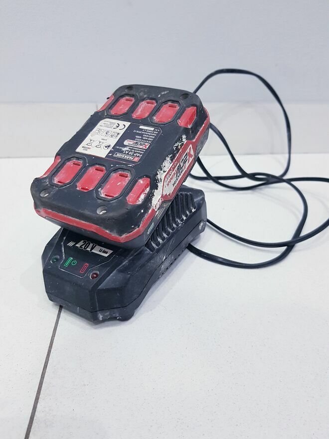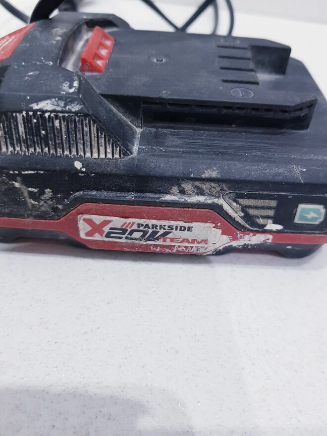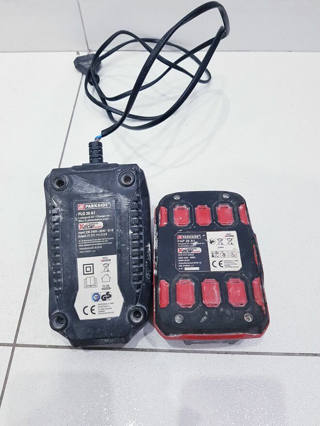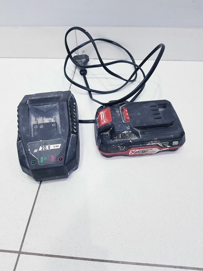 Przedmiotem sprzedaży jest używany akumulator litowo-jonowy marki Parksaide.Zestaw składający się z akumulatora litowo-jonowego 20V oraz ładowarki należący do serii Parksaide X 20V Team.
