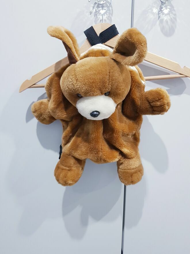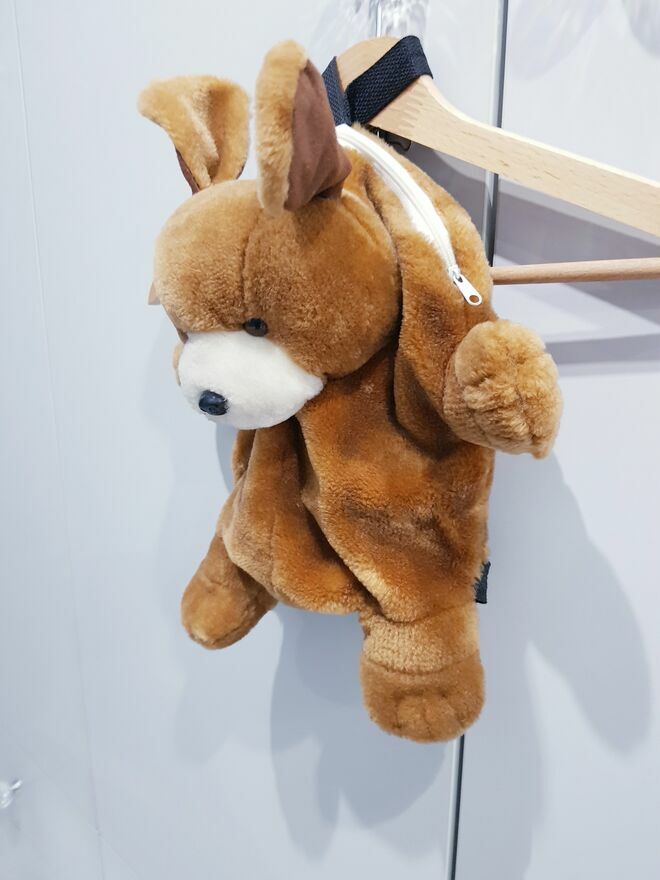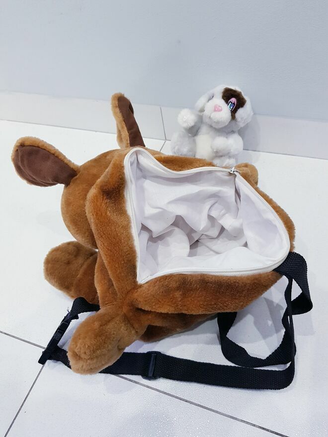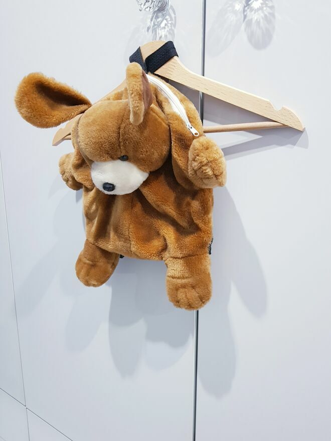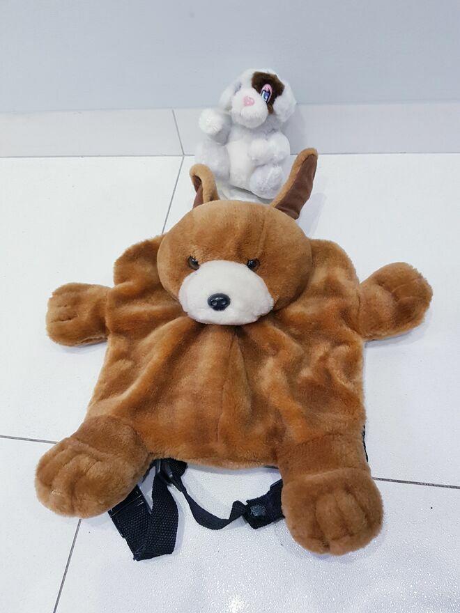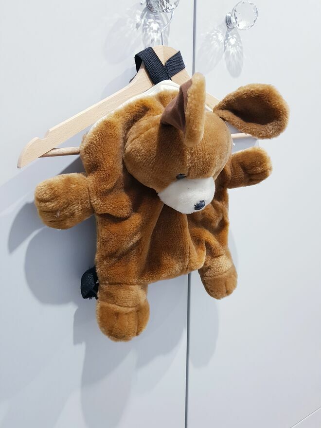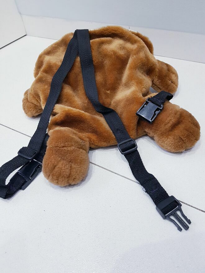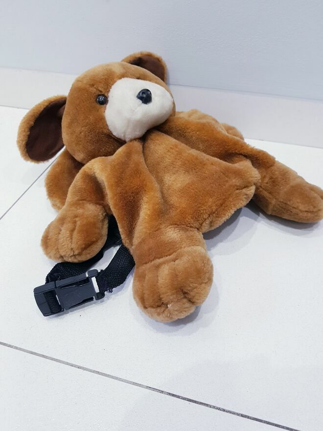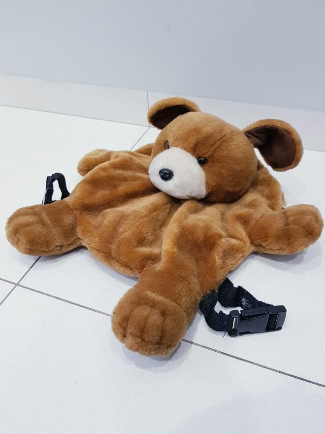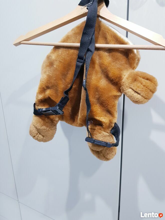 Przedmiotem sprzedaży jest bardzo fajny dziecięcy plecaczek w postaci pluszowego misia.Plecaczek w brązowo-karmelowym kolorze. Wykonany z mięciutkiego i bardzo przyjemnego w dotyku pluszu. Posiada głowę z oczkami i uszami oraz łapki.
