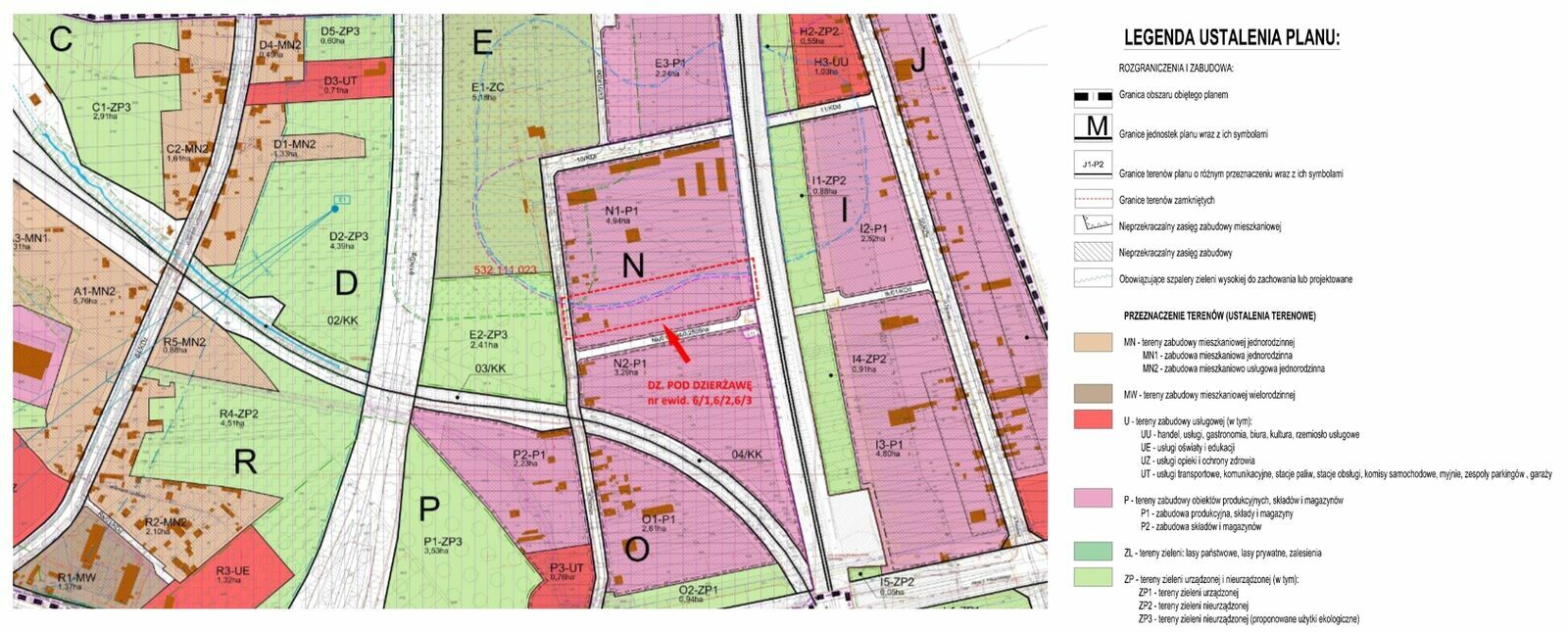 Uchwałą nr XLVI/884/05 Rady Miejskiej w Dąbrowie Górniczej z dnia 28 września 2005 roku w sprawie "Miejscowego planu zagospodarowania przestrzennego miasta Dąbrowy Górniczej dla terenów położonych w rejonie ulic: Manifestu Lipcowego - Alei Piłsudskiego - Gwardii Ludowej - Swobodnej - Tworzeń" teren oferty został zakwalifikowany do grupy obszarów zabudowy produkcyjnej, składów oraz magazynów. Nadano im oznaczenie sygnaturą N1-P1.