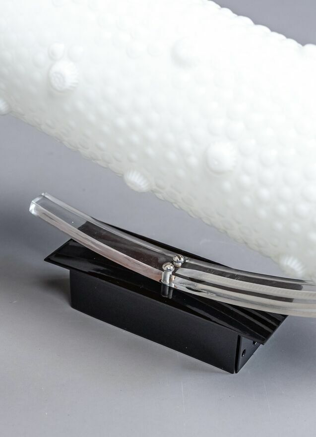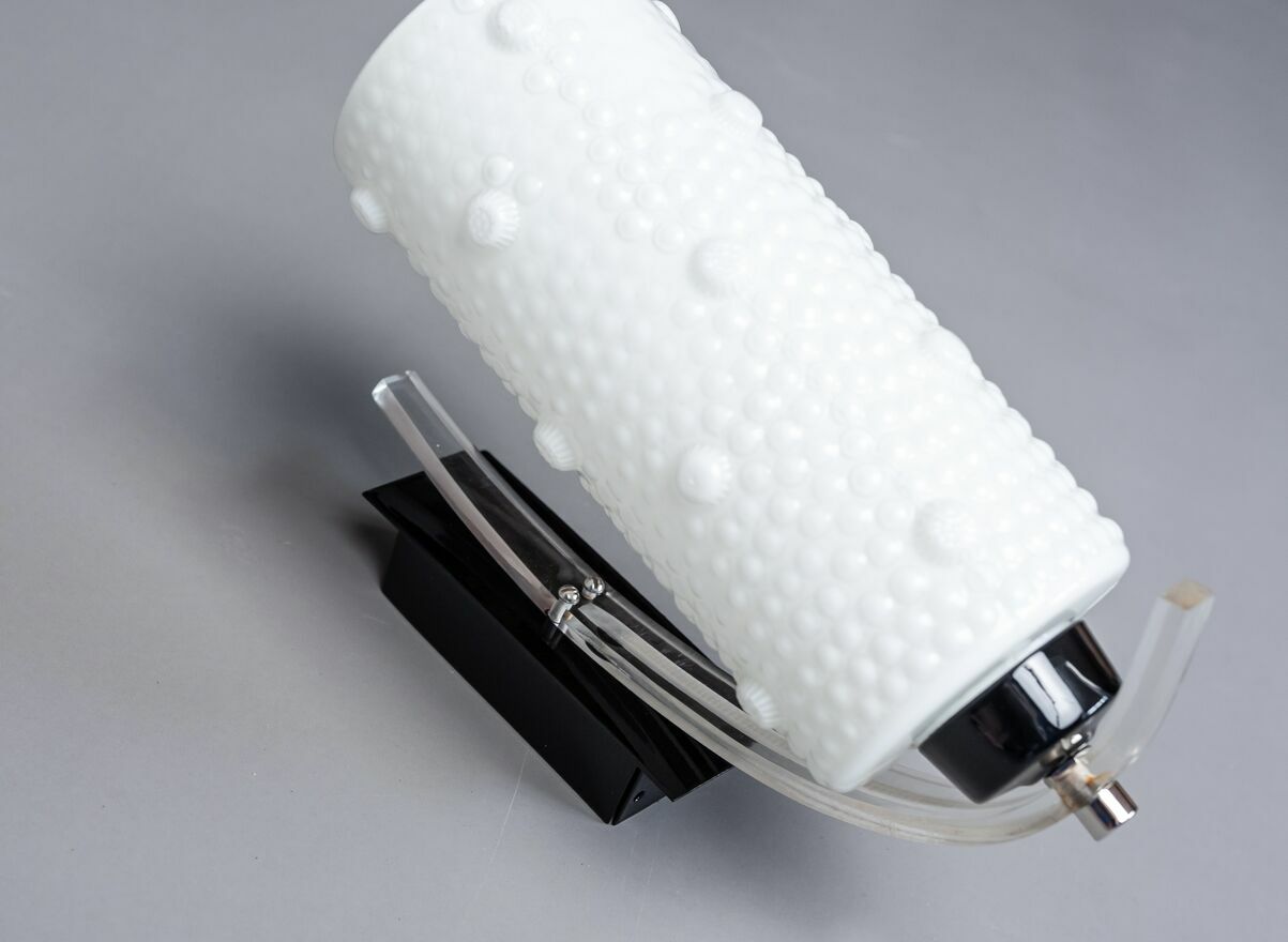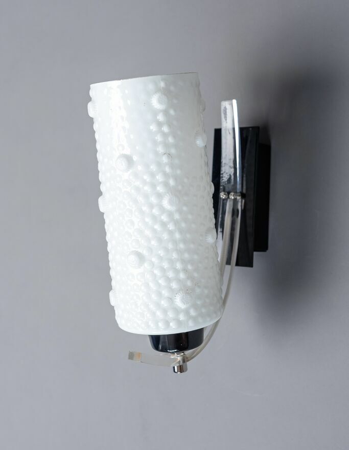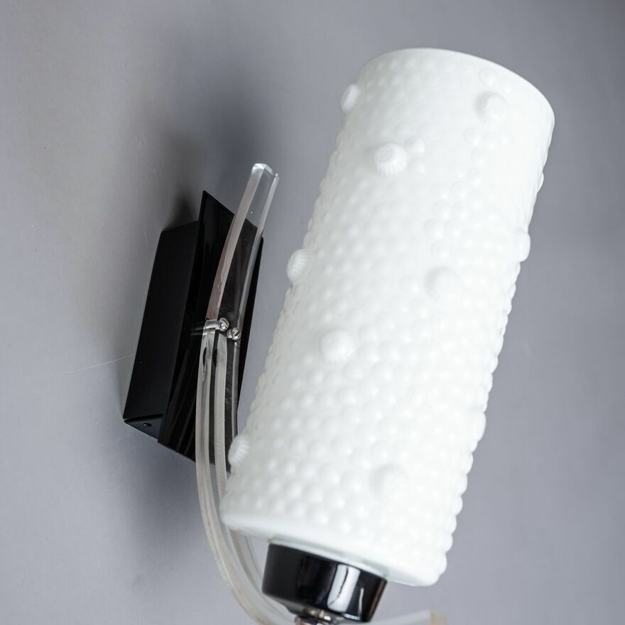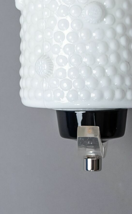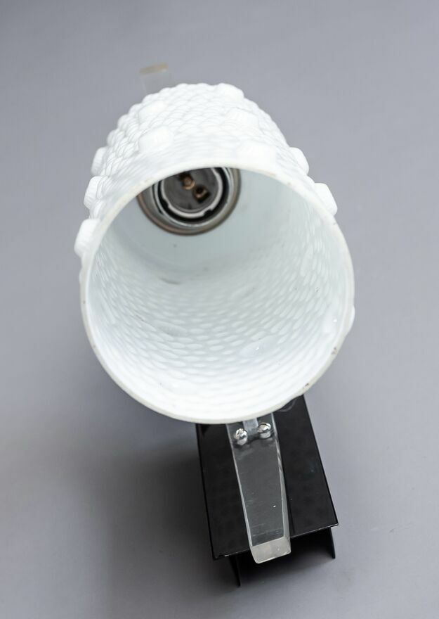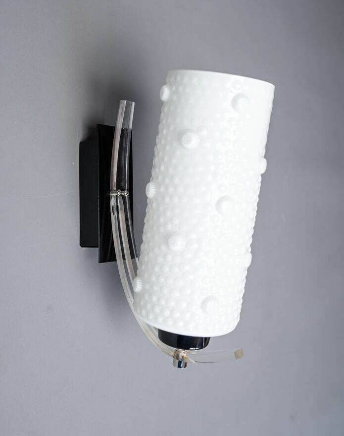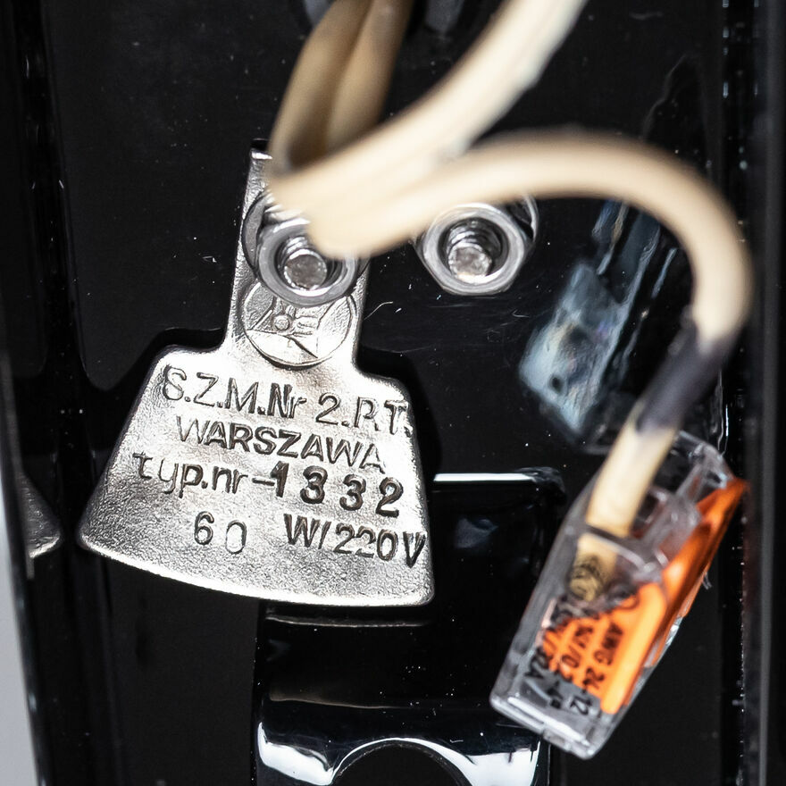 Kolekcjonerski egzemplarz dla miłośników polskiej sztuki użytkowej okresu drugiej połowy XX w. Przedmiotem oferty jest kinkiet pojedynczy typ 1332 pochodzących z okresu lat 60/70 ubiegłego wieku (Nr ew. 605). Kraj pochodzenia - Polska. Producentem są słynne Stołeczne Zakłady Metalowe SZM Nr2 Warszawa. Produkt skatalogowany w Katalogu 1001 drobiazgów wydanie z 1971r. Kinkiet został poddany całkowitej, profesjonalnej renowacji. Elementy metalowe zostały gruntownie oczyszczone (wypiaskowane) a następnie polakierowane metodą proszkową z zachowaniem oryginalnego koloru. Instalacja elektryczna nowa z zachowaniem charakteru oryginału. Oprawa na żarówkę - E27 (oryginalna). Stan po renowacji idealny. Klosz szklany ze szkła warstwowego w kolorze białym z charakterystyczną fakturą na zewnętrznej powierzchni.Niepowtarzalny design gwarantuje wyjątkowy efekt wizualny. Styl New Look charakterystyczny dla lat pochodzenia przedmiotu, potocznie określanym w Polsce okresem PRL. Przedmiot o wartości kolekcjonerskiej. Dzięki swojej stylistyce może pełnić funkcję doskonałego dodatku wystroju dzisiejszych pomieszczeń uzupełnionego o sentymentalną nutę.