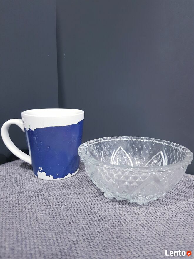 Do cukiernicy dorzucam ceramiczny kubek. Niestety, wierzchni kolor kubka schodzi. Trzeba poświęcić trochę czasu i łatwo kolor granatu schodzi.