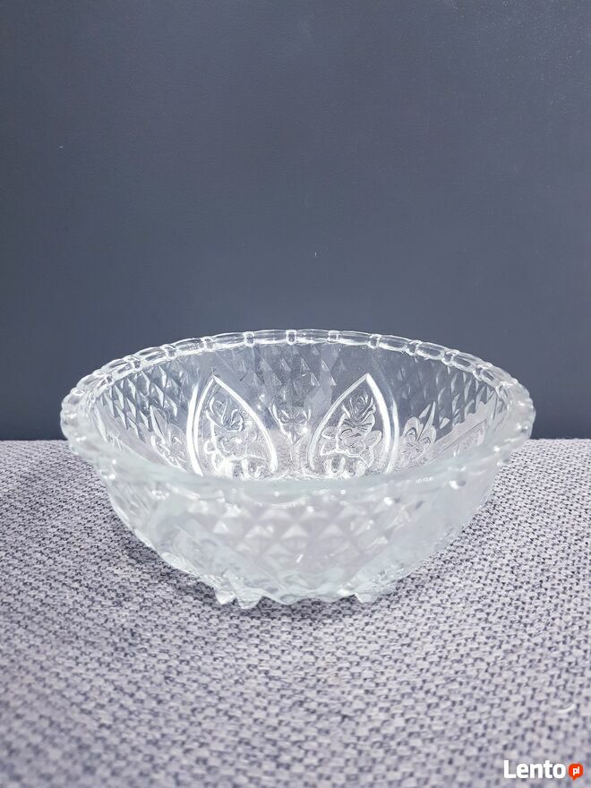 Przedmiotem sprzedaży jest kryształowa cukiernica (może być też używana jako miseczka).Cukiernica na 6 maleńkich nóżkach. Przepięknie zdobiona.