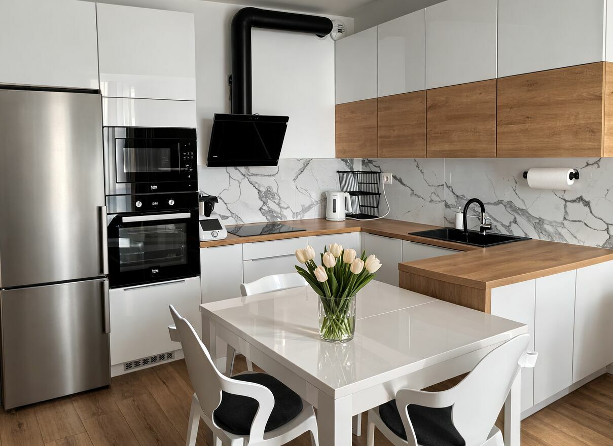 To propozycja dla osób, które szukają gotowego do zamieszkania wnętrza. Mieszkanie jest w pełni umeblowane i wyposażone w nowoczesny sprzęt AGD, a wszystkie zabudowy zostały wykonane na wymiar przez stolarza, co gwarantuje jakość, funkcjonalność i estetykę na najwyższym poziomie.