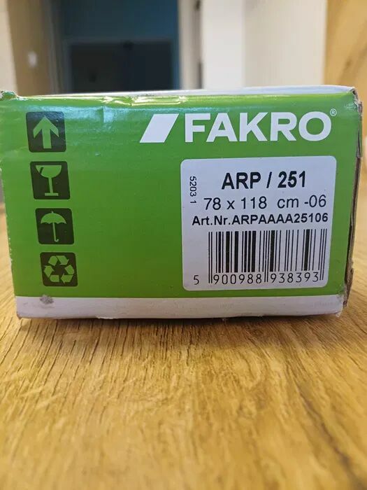 Nowe rolety Fakro w rozmiarze 78 x 118 cm. Produkt oznaczony numerem ARP/251.Grzes