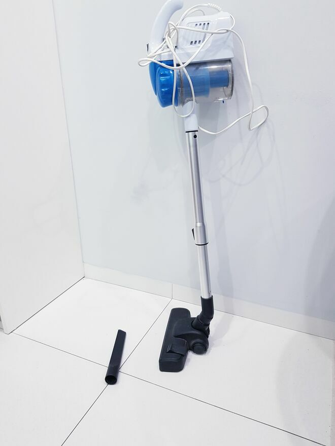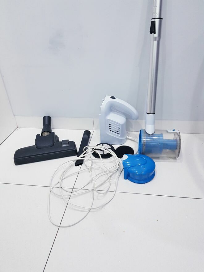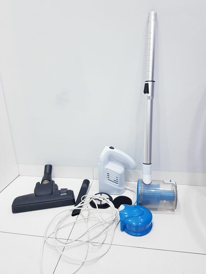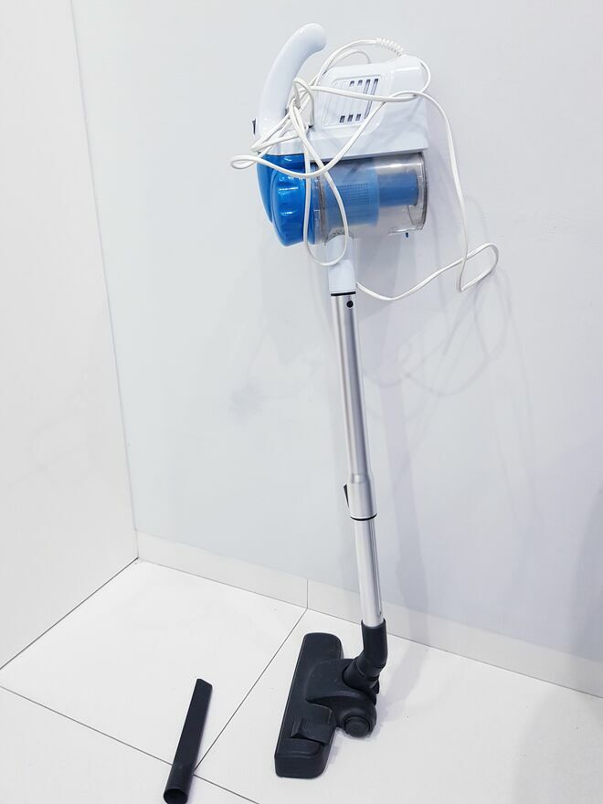 Przedmiotem sprzedaży jest sprawny cyklonowy odkurzacz pionowy w srebno-niebieskim kolorze. Prosty, bez udziwnień, spełniający swoją funkcjonalność. Bardzo łatwy w utrzymaniu czystości. Odkurzacz posiada zbiornik na kurz o pojemności 700ml. Jego opróżnianie zajmuje kilka sekund, dzięki przyciskowi, który podnosi klapkę. Łatwo wyjmowany filtr można wypłukać pod bieżącą wodą i odkurzacz w kilka chwil jest znów gotowy do pracy.Środek ciężkości znajduje się w uchwycie, dzięki czemu można łatwo nim manewrować bez zbędnego przesuwania przedmiotów (typu kwiaty, krzesła itp