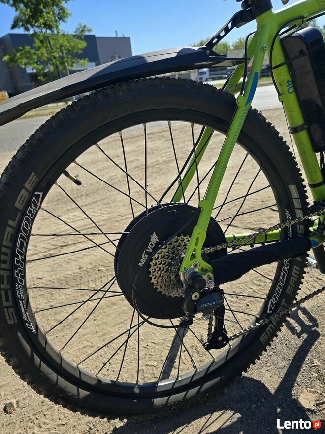 Sprzedam rower marki merida po profesjonalnej konwersji na elektryczny. Przebieg silnika i bateria to około 400 km, więc zestaw jest jak nowy. Rower w stanie idealnym po serwisie miesiąc temu. Posiada hamulce hydrauliczne i amortyzacje z przodu. Sama konwersja kosztowała około 6tysiecy.Rama 21,5