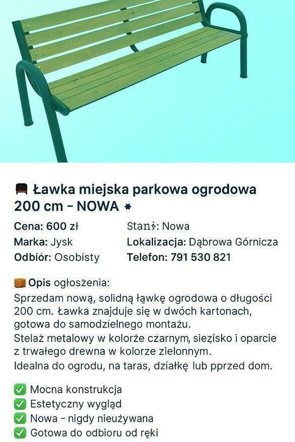 Sprzedam nową ławkę ogrodową o długości 200 cm – idealna do ogrodu, na taras, działkę lub przed dom.