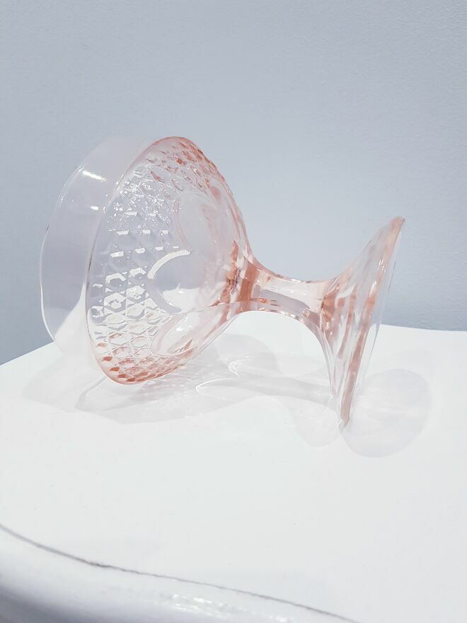 Wyprodukowana z prasowanego szkła sądowego, barwionego w masie na kolor łososiowo-różowy (szkło rozalinowe).