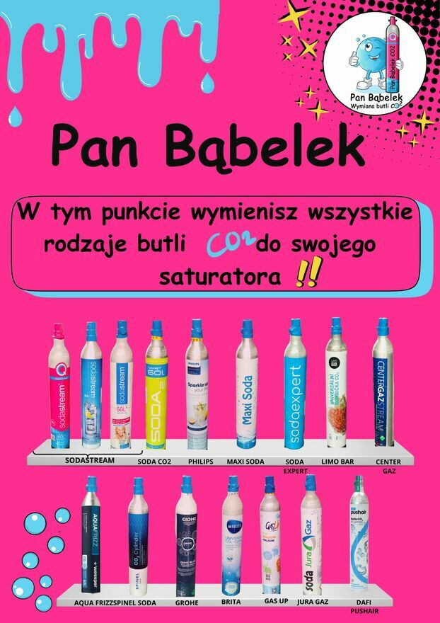 Skończył Ci się gaz do saturatora?Oferujemy wymianę butli CO2 do Sodastream QuickConnect, Twist, Brita, Grohe, Aarke, Wessper, Phipils i innych.
