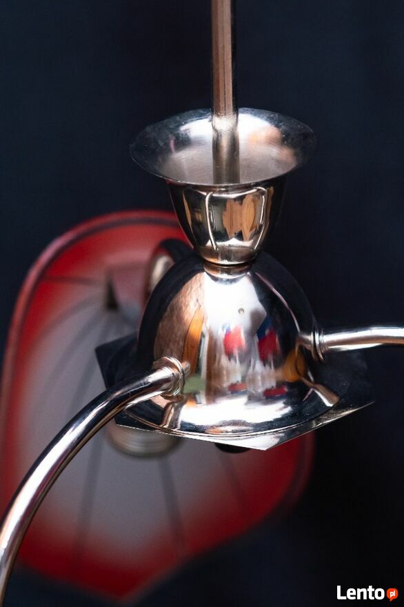 Oferta dotyczy 3-ramiennego żyrandola pochodzącego z okresu lat 60/70 ubiegłego wieku (Nr ew. 163). Kraj pochodzenia - Polska. Żyrandol został poddany pieczołowitej, profesjonalnej i całkowitej renowacji. Elementy metalowe konstrukcji zostały gruntownie oczyszczone, stara warstwa niklu została dokładnie usunięta a na jej miejsce metodą galwanizacji została nałożona nowa powłoka. Nowa Instalacja elektryczna. Stan po renowacji idealny. Wszystkie elementy oryginalne. Klosze szklane, ręcznie malowane. Oprawy na żarówki - 3 x E27. Możliwość dostosowania długości żyrandola do indywidualnych potrzeb nabywcy.Niepowtarzalny design gwarantuje wyjątkowy efekt wizualny. Styl New Look charakterystyczny dla lat pochodzenia przedmiotu, potocznie określanym w Polsce okresem PRL. Mimo upływu czasu doskonale komponuje się z wystrojem dzisiejszych pomieszczeń.